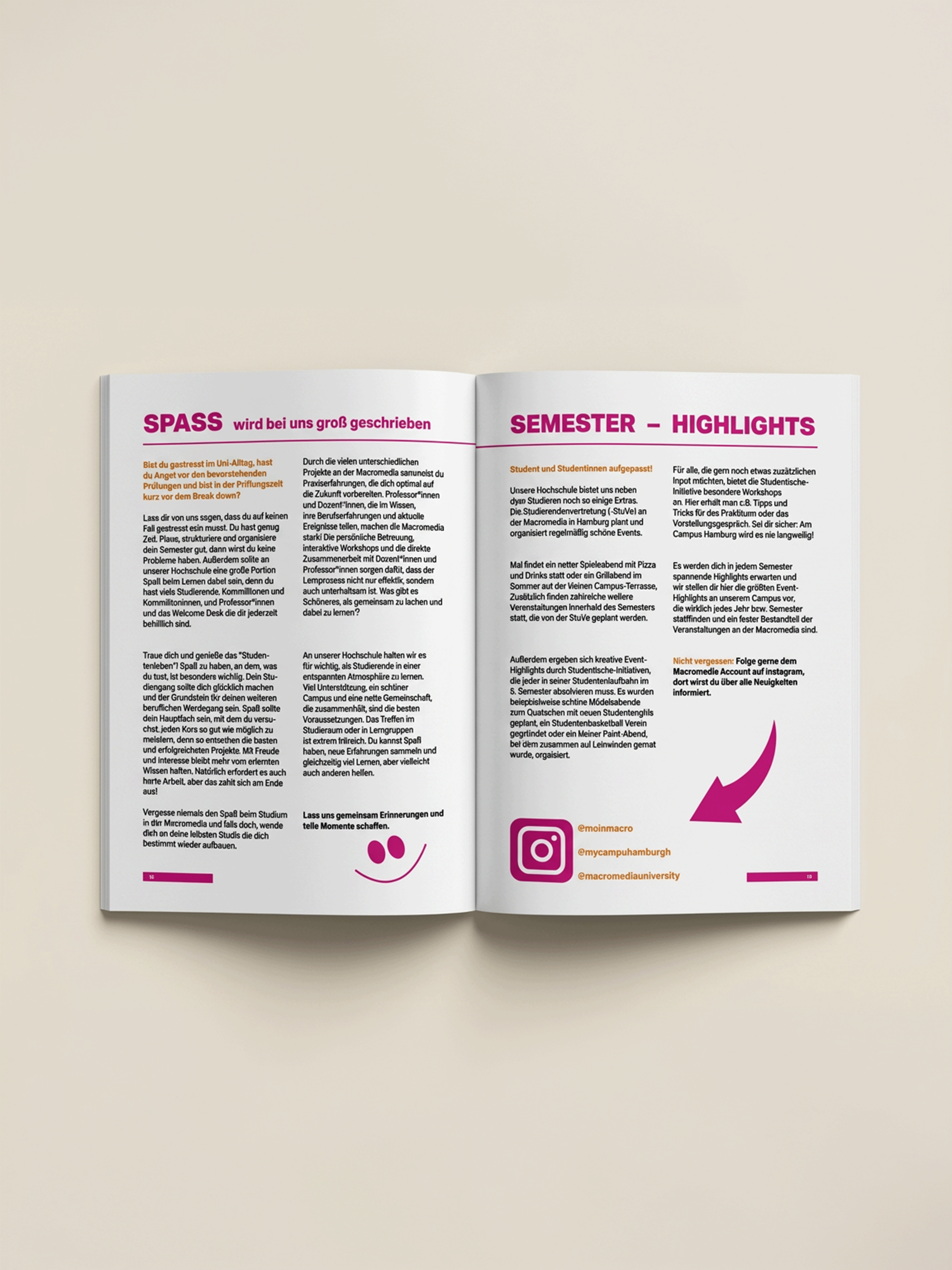 Hochschulmagazin der Macromedia für die Studierenden (Ausgabe 5) - Gemeinsam mit einer Journalistik-Studentin und einem weiteren Grafikdesign-Studenten durfte ich das Studierendenmagazin realisieren.